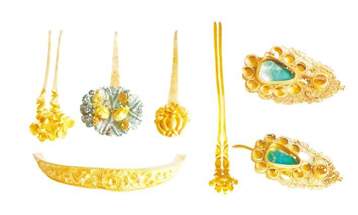 元青花“四爱图”梅瓶是现存极为稀少的以人物图案为主要题材的元代青花瓷器珍品,被鉴定为国宝级文物。出土于武汉黄陂的元代金头饰,则代表了元代金器精湛的工艺水平。