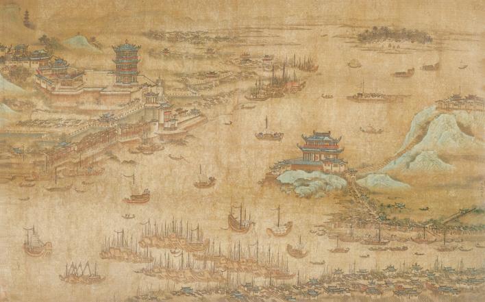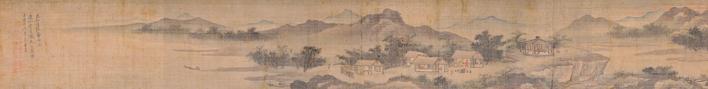 明代《江汉揽胜图》描绘长江、汉水交汇处的武汉三镇景观,留存了500多年前武汉三镇相对真实的图像记忆,为了解武汉的历史变迁传递了重要信息。明代著名浙派画家郭诩的《竟陵四景图》,近10米长卷布局有致、独具匠心、水墨淋漓、气势恢宏,展现了明代中叶天门地区的景物风貌,具有较高史料价值。蓝釉描金鸡心执壶出土于武汉江夏一座明代镇国将军墓中,器型规整,胎质致密,釉面光润,壶身有多处描金,釉色纯净深沉,是明代蓝釉瓷器中的杰出代表。