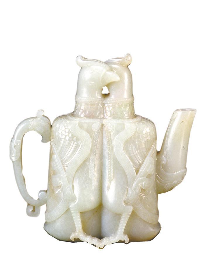 清代“乾隆御制”款双凤交颈玉执壶,玉质温润无瑕,造型新颖奇巧,工艺精湛,寓意美好。壶底刻有“乾隆御制”填金篆书款,为清代乾隆时期宫廷造办处监制的御用器,也是清代玉雕中的精品。清代郑燮《行书节录怀素〈自叙帖〉》轴,以行、楷、隶三体相参,书法缓急相间,稳健遒劲,奔放潇洒,疏密倏转,体现出其独树一帜的艺术风格。