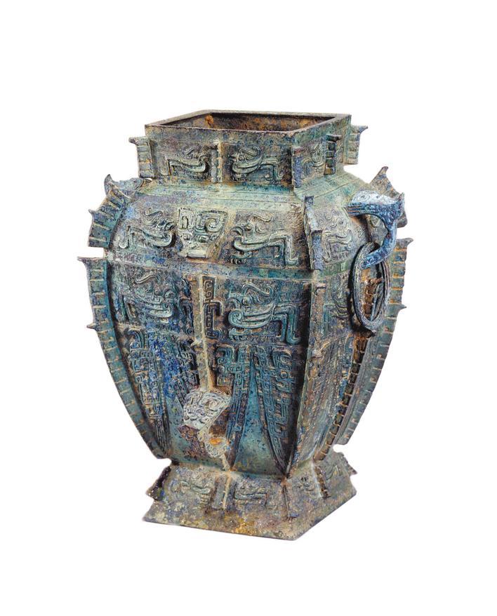 同为国家一级文物的商代凤纹方罍,器盖出土时已佚失,留下不小的遗憾。器盖不能寻回,但为其配盖是可行的。馆方参考目前所见商周方罍完整器,根据主题纹饰在器身与器盖上的分布特点,从中甄选出与凤纹方罍体量、造型、工艺最为接近的洛阳博物馆藏“母鼓”龙纹方罍为参照。通过三维扫描、数据修复、3D打印、翻制硅胶模具、制作蜡模、青铜铸造、铜器表面做旧等技术手段,为凤纹方罍配置了合适的器盖,成功为凤纹方罍“加冕”,弥补了一大缺憾。
