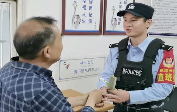 本报讯 5月15日,在张湾公安分局花果派出所里,一名中年男子拉着值班民警的手连声道谢:“如果不是你们帮忙,我的5万元钱不可能这么快就找回来。”