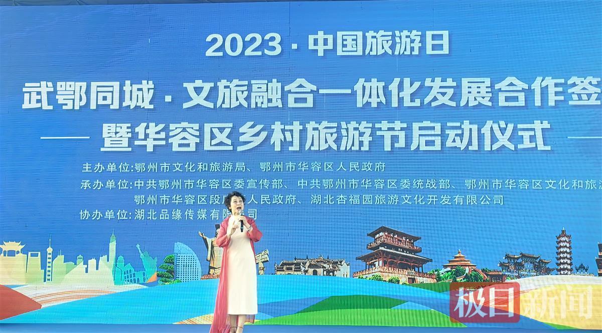 “树上的鸟儿成双队,绿水青山带笑颜……”5月19日,2023年中国旅游日武鄂同城·文旅融合一体化发展合作签约暨华容区乡村旅游节启动仪式活动,在优美的歌声中拉开帷幕。