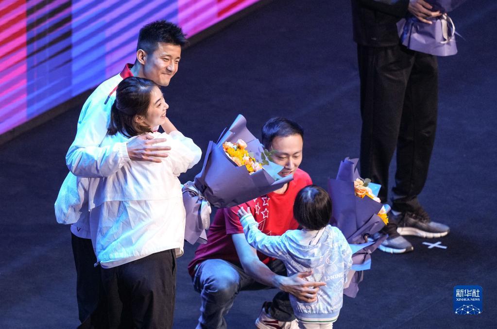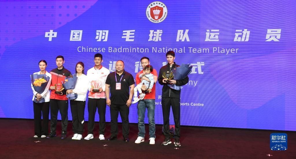 当日,中国羽毛球队运动员退役仪式在江苏苏州奥体中心体育馆举行。