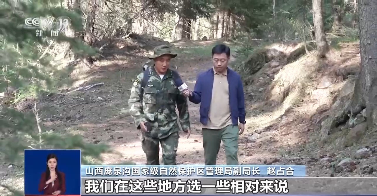 山西庞泉沟国家级自然保护区管理局副局长 赵占合:偏僻的一些道路,还有一些和偏僻道路相交叉的小路径,那些通常就是野兽走的,我们在这些地方中选一些相对开阔的地方,然后把红外相机布上。布设红外相机时距地面至少40厘米左右,这样大小动物都能拍到。
