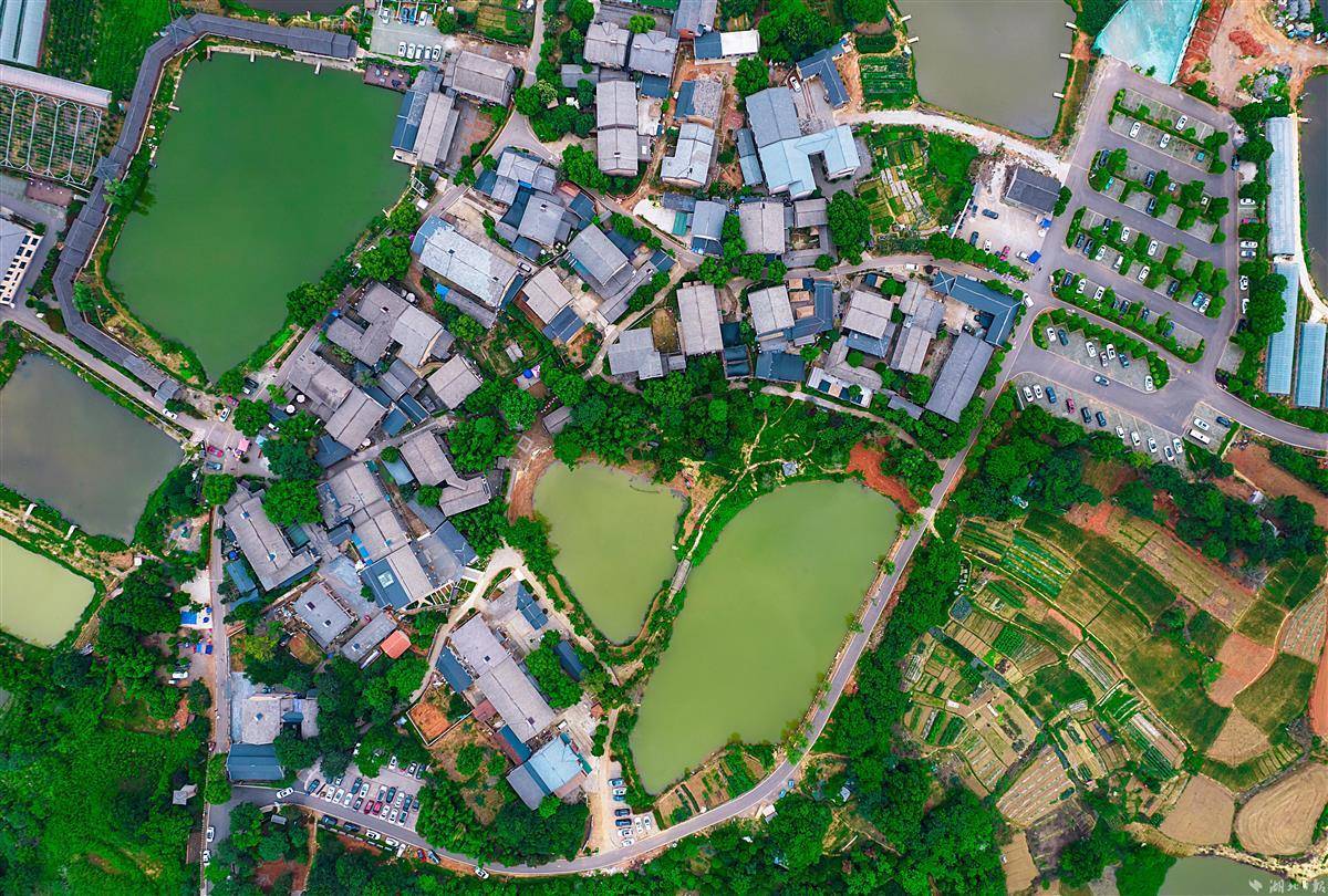 5月20日,无人机镜头下的武汉市江夏区小朱湾,是一个看得见山、望得见水、记得住乡愁的地方。