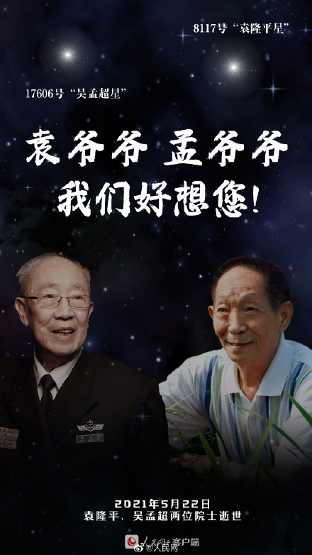 袁隆平、吴孟超两位院士离开我们两年了。谁把人民装进心中,人民就把谁记在心中,一起缅怀夜空中最亮的两颗星!