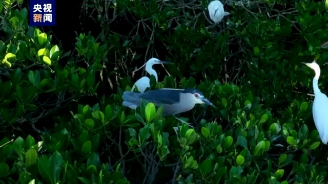 近日,总台记者在海南东寨港国家级自然保护区和临高彩桥红树林自然保护区拍摄到多种鹭鸟在坐巢孵化和哺育幼鸟,其中有白鹭、夜鹭、池鹭等鹭鸟。
