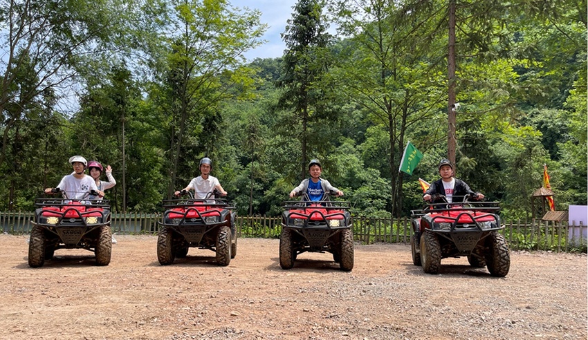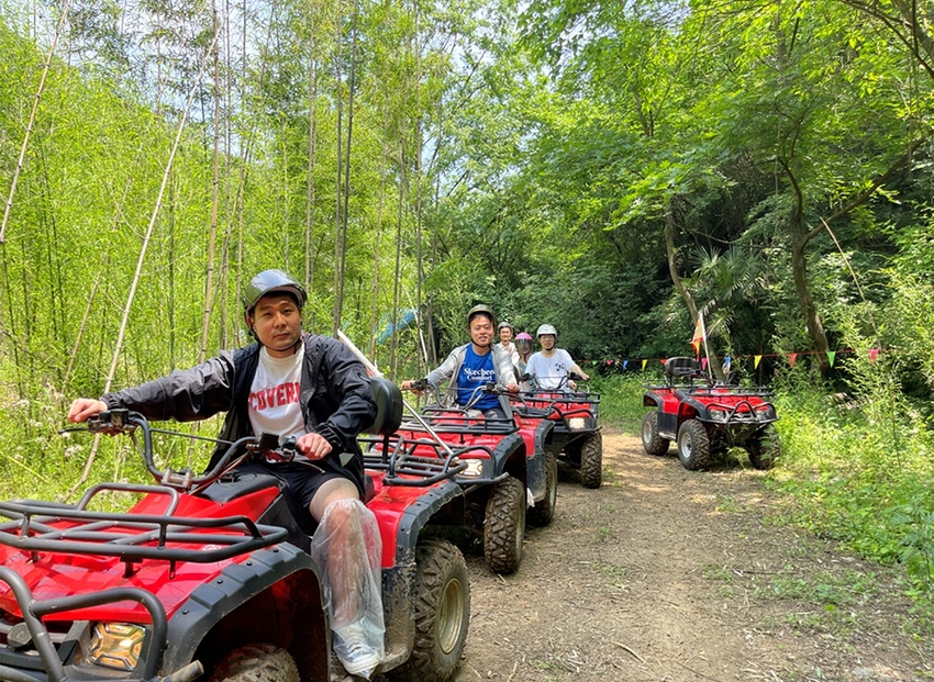 “现在刺激探险类项目越来越受年轻人欢迎。下一步,我们将以‘旅游+探险+乡村振兴’为目标,陆续开发森林徒步、丛林穿越、真人CS、露营等项目,将这里打造成一个综合性的户外网红越野基地。”狮子岩生态旅游区负责人介绍。