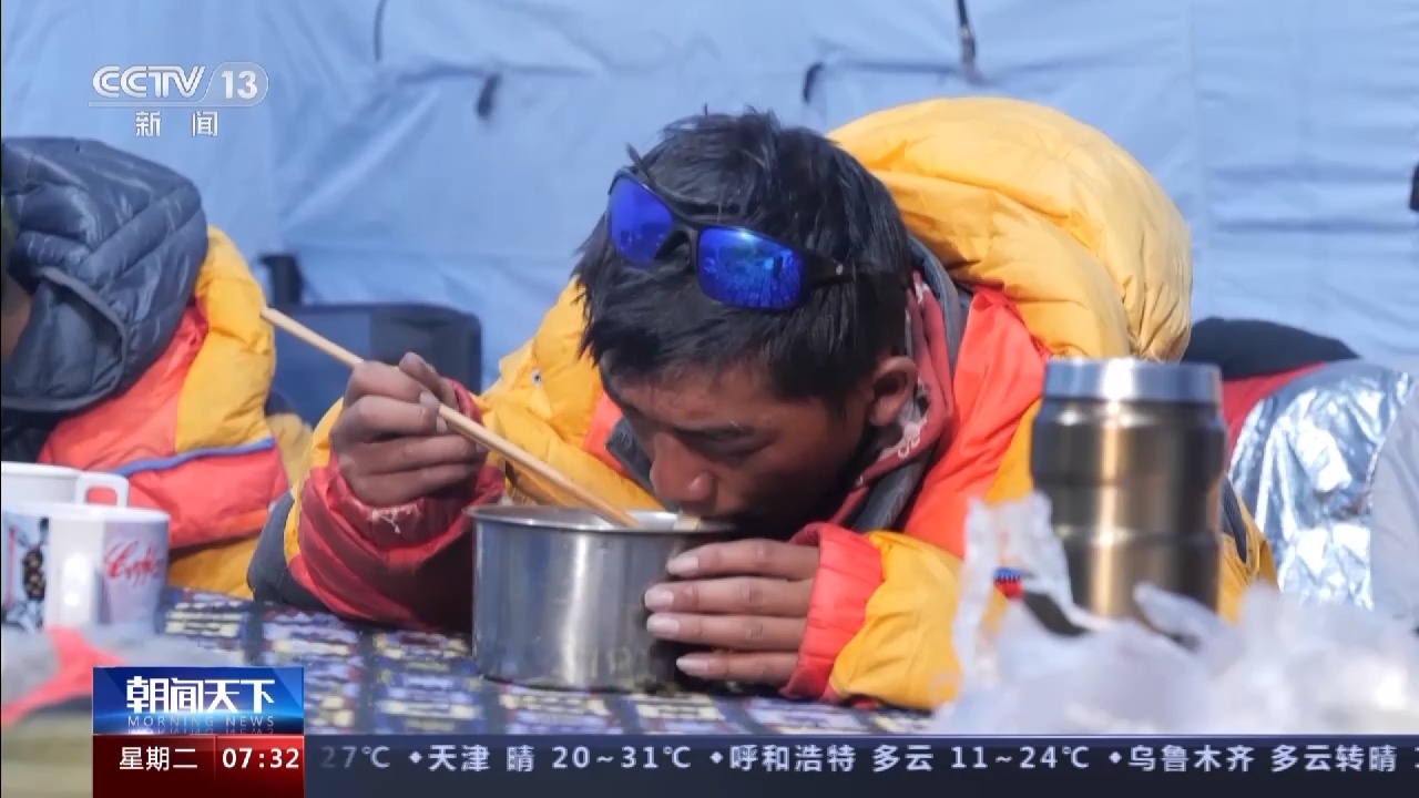 总台记者 陈琴:现在时间是5月13日晚上的9点50分,参与7790米和8300米自动气象站升级改造的这些科考登顶人员,还有我们修路的维护人员,最后一批将抵达这里。