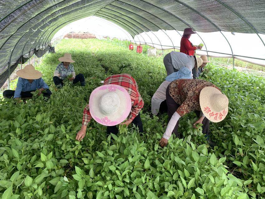 湖北日报客户端讯(通讯员 盛丹)近日,在云梦县沙河乡练港口村练港蔬菜专业合作社种植基地里,一座座蔬菜大棚整齐排列,栽种的空心菜绿油油的,长势喜人。收割、装筐、搬运、装车……农户们三五成群正忙碌着采摘新鲜的蔬菜,基地呈现出一派繁忙的丰收景象。