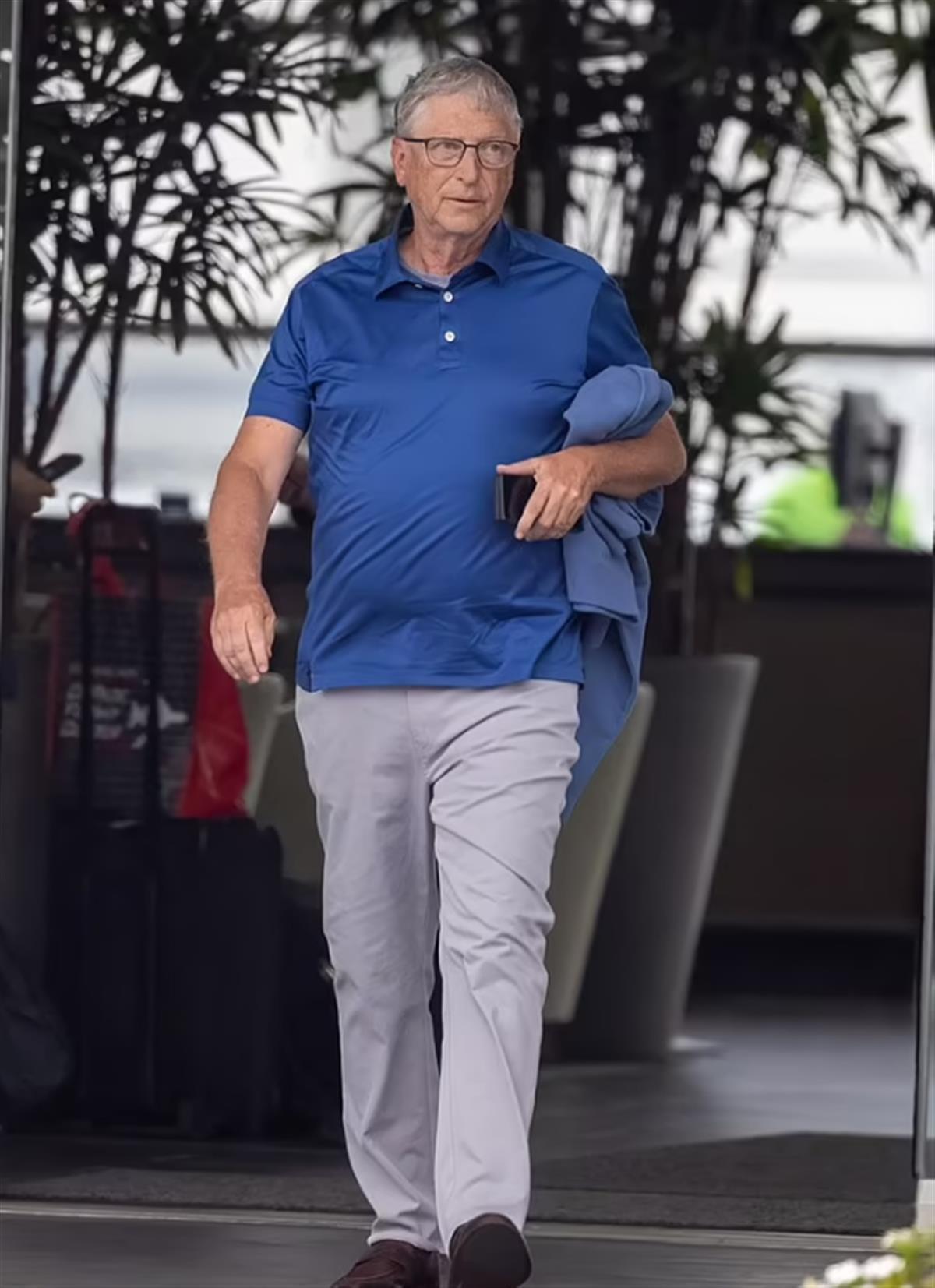 当天,盖茨现身时,身穿蓝色polo衫和灰色裤子,手上拿着手机。一名女助理前来迎接他,递给他一瓶低糖可乐。这是他被曝出轨俄罗斯桥牌美少女后的首度公开露面。