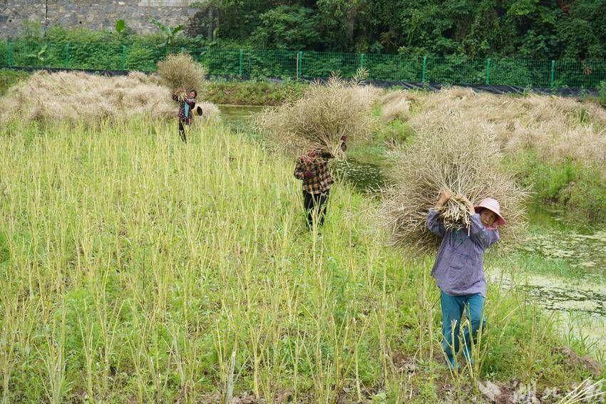 随着夏季收割季节到来,辖区产生大量油菜秸秆,该乡发动党员志愿者深入田间地头协助农户清理秸秆,并进行集中清运处理,同时做好秸秆禁烧宣传,营造良好的生态环境。