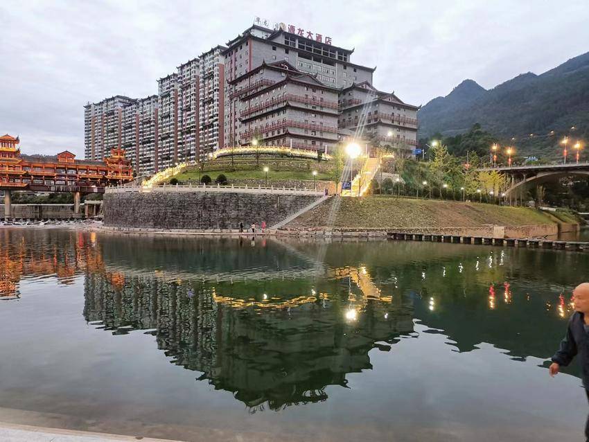 湖北日报客户端讯(通讯员 何启发 杜雪平)一样的夜色,不一样的烟火。鹤峰县容美城区沿河两岸的亲水走廊鲜花常开,芬芳满园,在温婉的音乐里漫步,看华灯花初上、水中倒影,正如初唐诗人张若虚“春江花月夜”,寻觅浪漫就在溇水河岸的亲水走廊。明丽的灯光照进清粼粼的河水,宛如星光散落人间,点亮了鹤峰山城容美的梦里水乡。清凉的夜晚游人如织,享受静静的夜空,璀璨的星河,让你如梦如幻。
