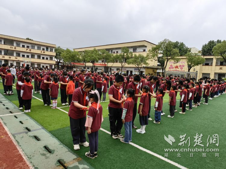 荆楚网(湖北日报网)讯(记者唐天琪 通讯员刘曦雯)有一种颜色,是红领巾的颜色;有一种光荣,是戴上红领巾的光荣。为传承好“党是先锋队、团是突击队、少先队是预备队”的红色血脉,引领少年儿童从小听党话、跟党走,增强全体少先队员的组织意识和爱国情结,5月24日上午,武汉市张家铺学校举行“红领巾,我为你自豪”少先队入队仪式。