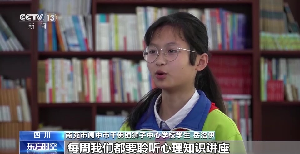 四川南充千佛镇狮子中心校学生 岳洛伊:每周我们都要聆听心理知识讲座。在课堂上我也学到了很多知识,比如如何调节自己的心情?怎样做好自我保护?这个课堂为我们的成长打开了心灵之窗。