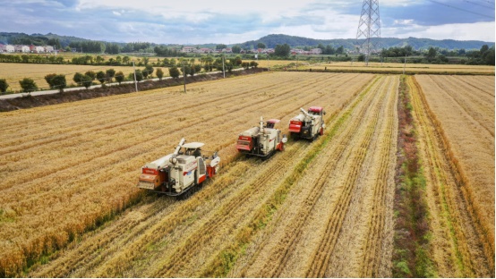 不远处,收割完的麦田里,一台台灭茬机、旋耕机、播种机开始接续忙碌。过高的小麦茬要齐根斩断,粉碎还田;旋耕机进行深层翻耕后,播种机将香稻种子和肥料均匀地撒入土壤,覆土压实。“前边收割,后面播种。旱直播,一次性完成旋耕、播种、施肥等作业流程,既省时省力,还减少投入。”合作社管理员王绍家介绍,旱直播就是在旱地基础上种水稻,播种期不受水源限制。一亩地可节省育秧、栽插费用210元,全年可节约成本30余万元。2016年,佳刚合作社的2000亩土地采用“旱直播”方式种植随州香稻,亩产达到1200斤,加上随州香稻稳定向好的市场行情,合作社连续五年净利润超过100万元。