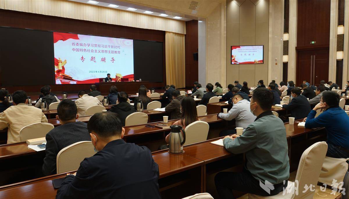省委党校(省行政学院)副校(院)长肖卫康和省社科院副院长袁北星分别以《习近平新时代中国特色社会主义思想的核心要义和科学体系》《学深悟透习近平新时代中国特色社会主义思想 牢牢把握这一重要思想的世界观、方法论》为题作专题辅导。