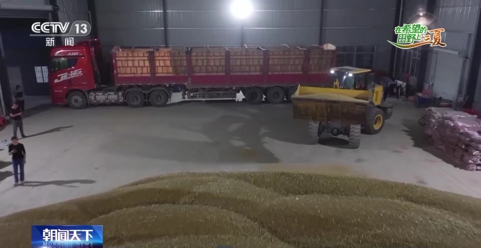 夜里11点,几辆大卡车把张启峰收获的小麦拉到烘干基地进行烘干,确保颗粒归仓。