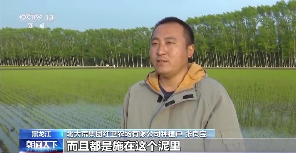 北大荒集团红卫农场有限公司种植户 张良宝:智能插秧机施肥也更加均匀了,而且都是施在这个泥里,施在水稻的根旁,用农民的话说就是“把肥直接送到庄稼嘴边”。我们自己施肥都是抛洒,都在表面,浪费也大。