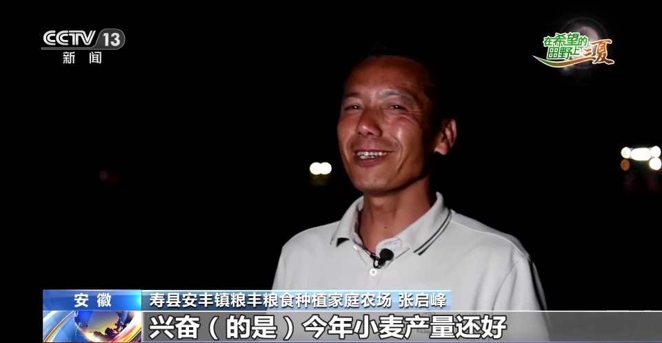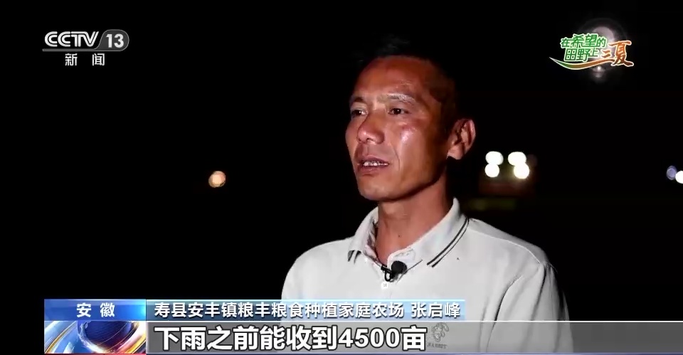 安徽寿县安丰镇粮丰粮食种植家庭农场 张启峰:也兴奋也着急。兴奋的是今年的小麦产量还好,着急的就是以后有几天的大雨,割不完的话,过了这场雨麦子就坏掉了。肯定要干到通宵,干到天亮,一直干到下雨为止。