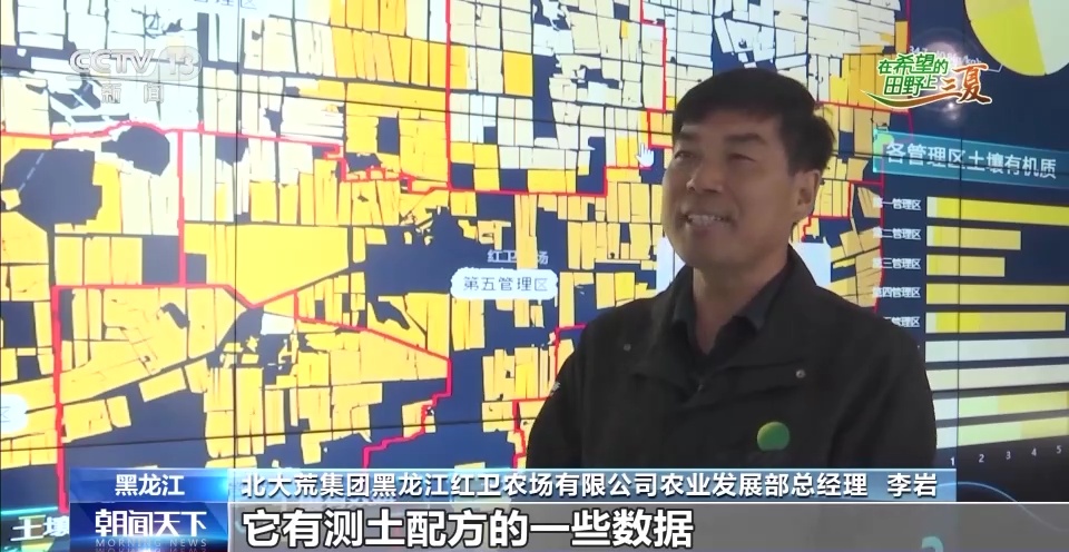 北大荒集团黑龙江红卫农场有限公司农业发展部总经理 李岩:这个地块有测土配方的一些数据,以及物联网采集的实时数据。种地就像照顾孩子一样,它什么时候饿了、想吃什么、能吃多少都能通过实时数据看到,甚至可以精准计算出每一天该做什么事情。通过农业数据化,让农业生产精准化,最大程度地节本增效。