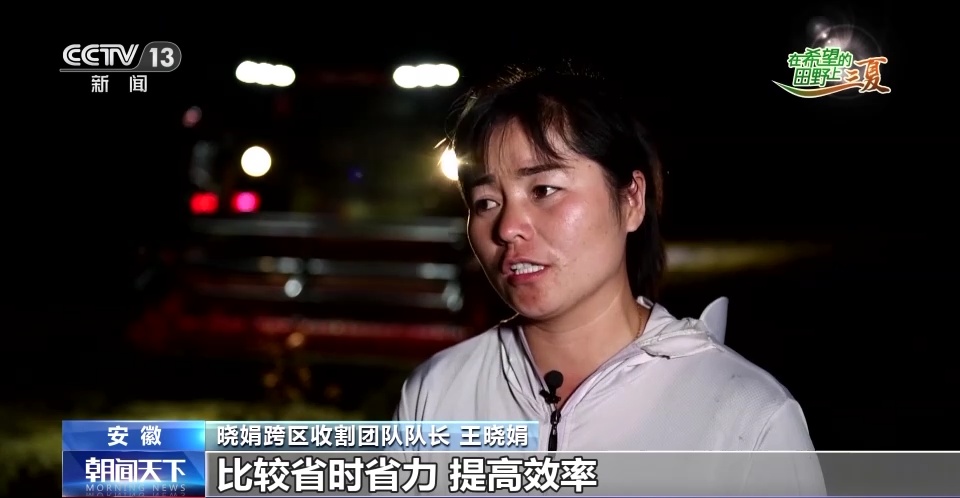 晓娟跨区收割团队队长 王晓娟:我们车上装了北斗智能一体机,省时省力,提高效率,而且精准度非常好,夜里抢收2000亩没有问题。咱们的车子和机器都是马力增大了,以前是60马力的,现在是200马力的。