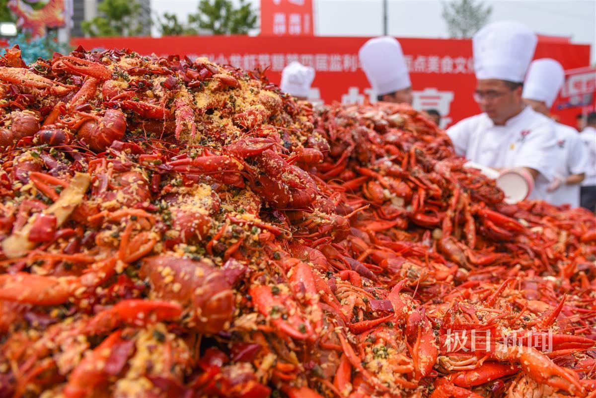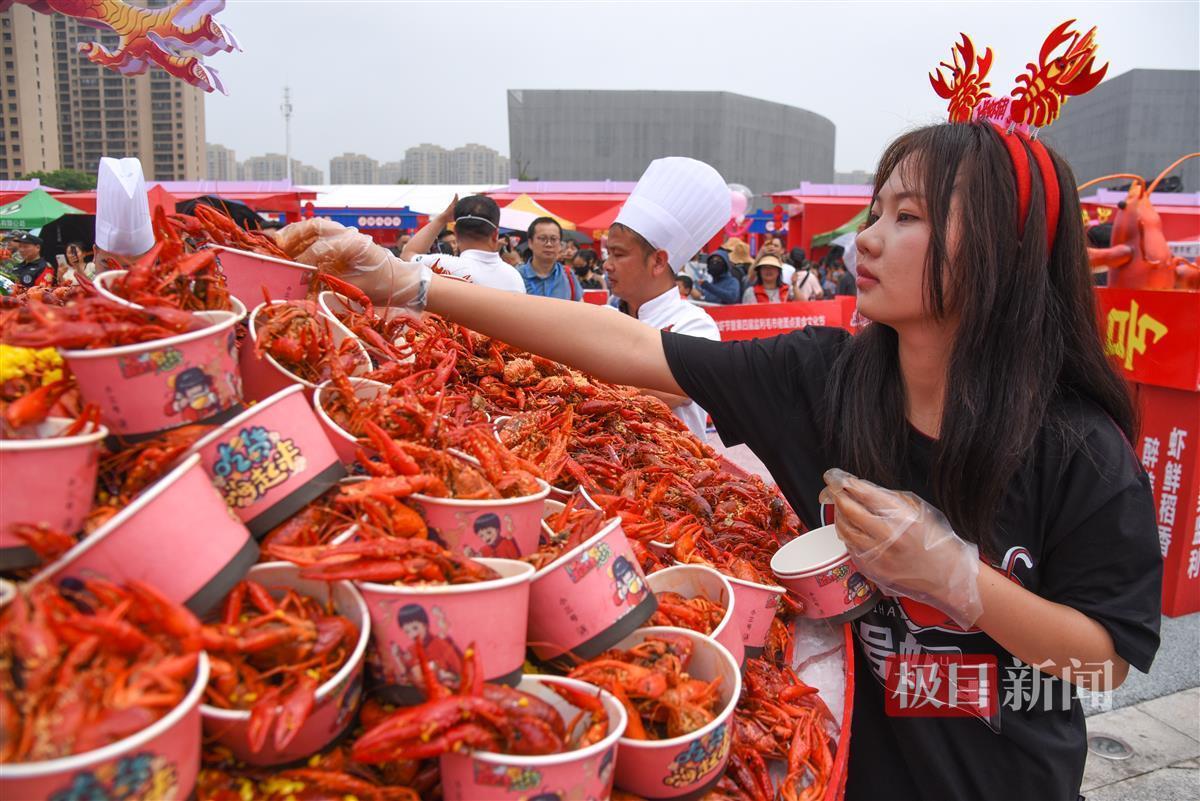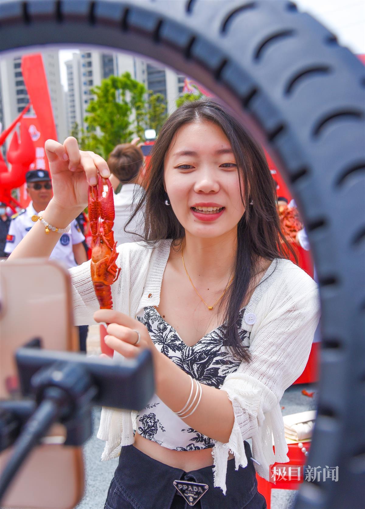 “12款小龙虾口味,油焖大虾、蒜蓉虾、清蒸虾、卤虾、干捞虾、干爆虾……”活动现场,一号虾铺的主播还与网友互动,分享“千人龙虾宴”的火爆场面。