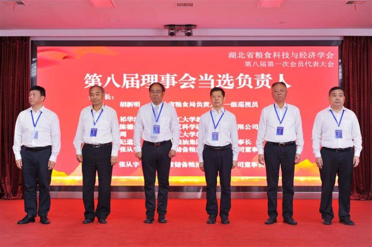 大会投票选出第八届理事会负责人:胡新明当选会长;武汉轻工大学教授祁华清、国粮武汉科学研究设计院有限公司董事长陈德炳、武汉轻工大学教授周坚、湖北省粮油集团有限公司董事长纪道斌、湖北省储备粮油管理有限公司董事长张从宇当选副会长;张从宇兼任秘书长。