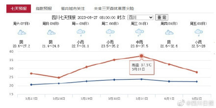 四川蒸桑拿模式要来了!中国天气网气象分析师闵裕秋表示,未来几日,南方多地气温将“组团”创新高,成都最高气温可能创今年以来新高。虽然四川最高气温未达35℃高温线,但空气相对湿度增大,体感温度也可能超过40℃。下周三,四川最高温将达到37.5℃。注意防暑降温哦!(蓉城政事)