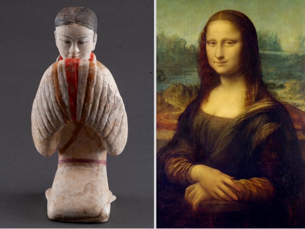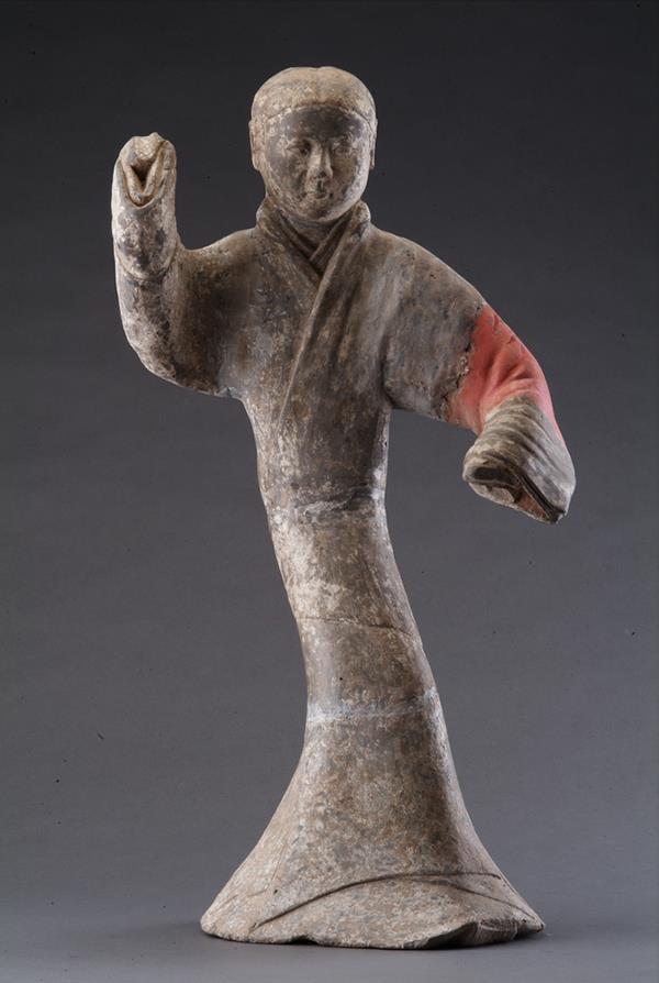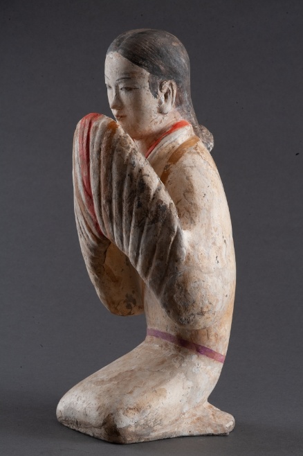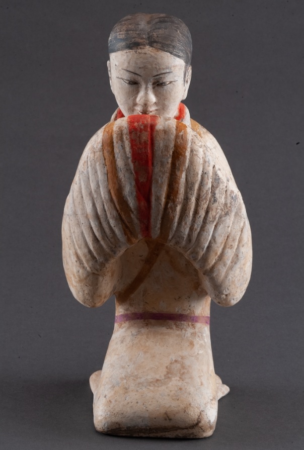 △西汉塑衣式彩绘拱手跽(jì)坐女俑