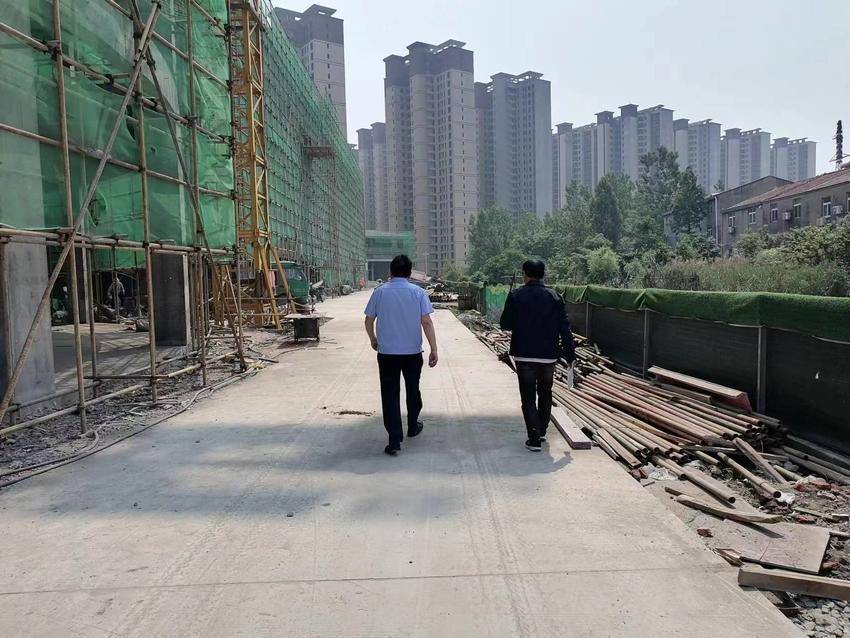 在各个建筑工地内场,工作人员在积极宣传环境保护法规的同时,认真查看施工现场渣土苫盖是否到位、围挡是否及时更换,洒水降尘等防尘控尘措施是否落实;在外围,工作人员在重点路段实时检查,渣土运输车辆是否存在带泥上路以及沿途散洒飘飞粉尘赃物等问题。