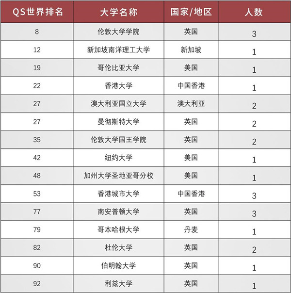 毕业生获得国(境外)大学offer一览表(部分)