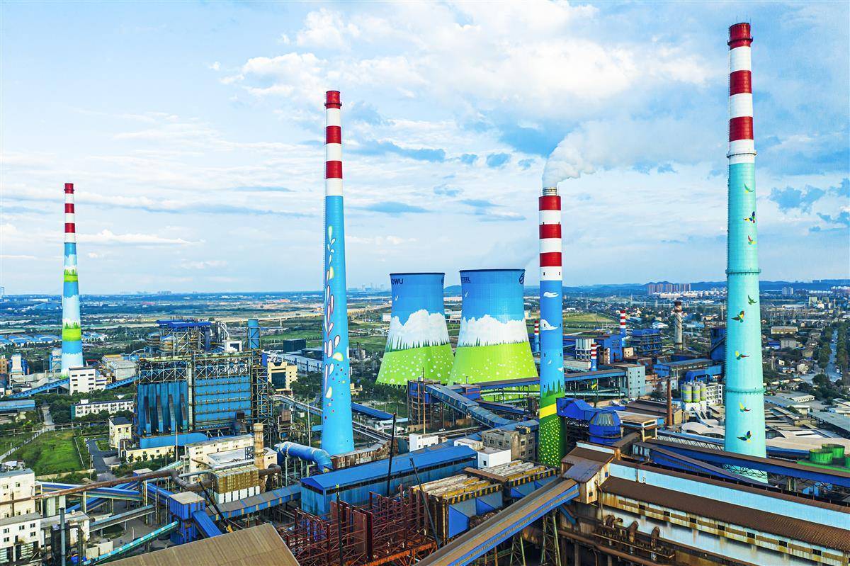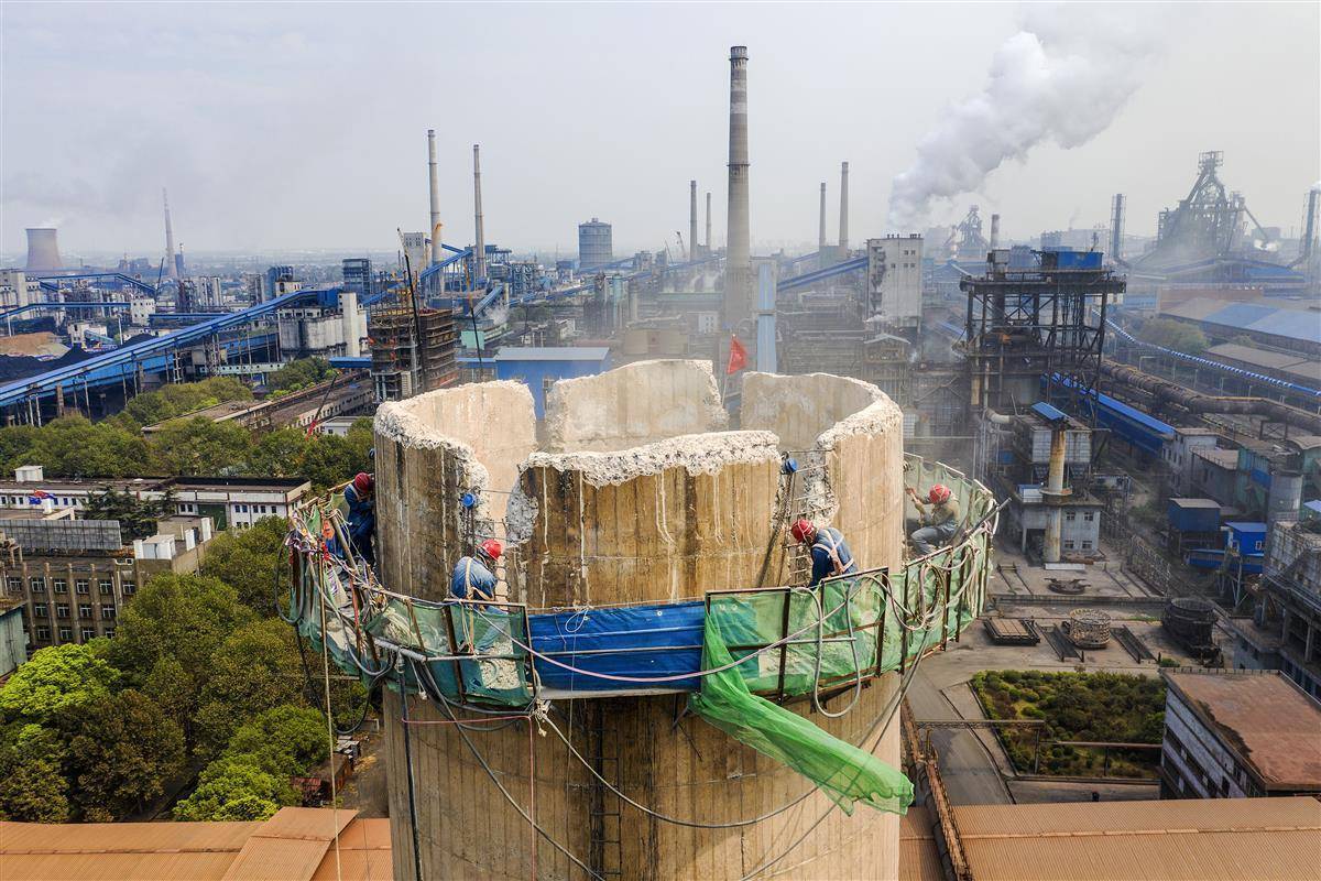 2021年9月13日,武钢有限对厂区内高耸的烟囱、冷却塔等建筑物外观进行彩绘,美化环境。