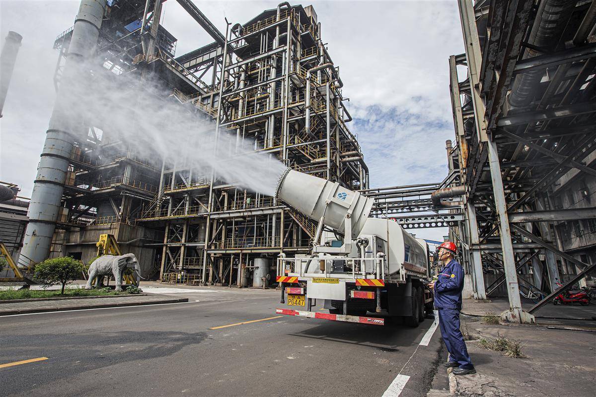 2018年9月18日,雾炮车在焦化公司厂区内循环喷雾降尘。