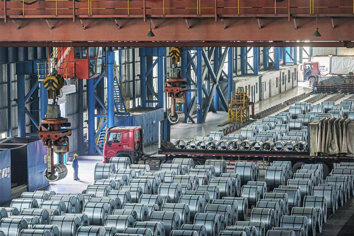 2021年12月14日,优质成品冷轧板钢卷正在吊装外运。