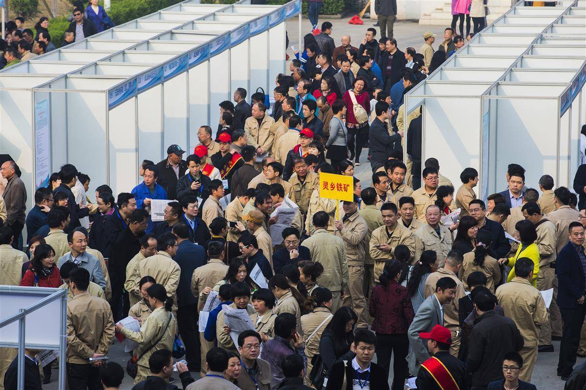 2016年3月19日,在武钢体育场,“普惠服务进企业暨助推武钢转型发展”大型招聘会现场,大批工人在寻找适合自己的岗位。