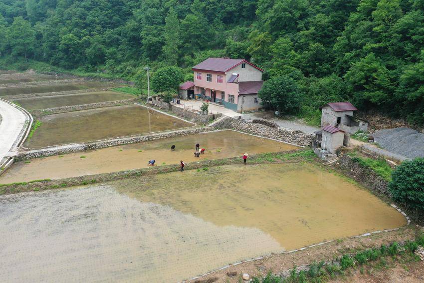 莽莽群山染新绿,高山水稻插秧忙。在襄阳市保康县,有着“襄阳屋脊”美誉的龙坪镇冯家岭村潮水河的梯田里,这里犁耙水响,当地村民正抢抓农时,将一兜兜长势良好的水稻秧苗插进泥土里。高海拔地区种上水稻,村民脸上洋溢着幸福的笑容。