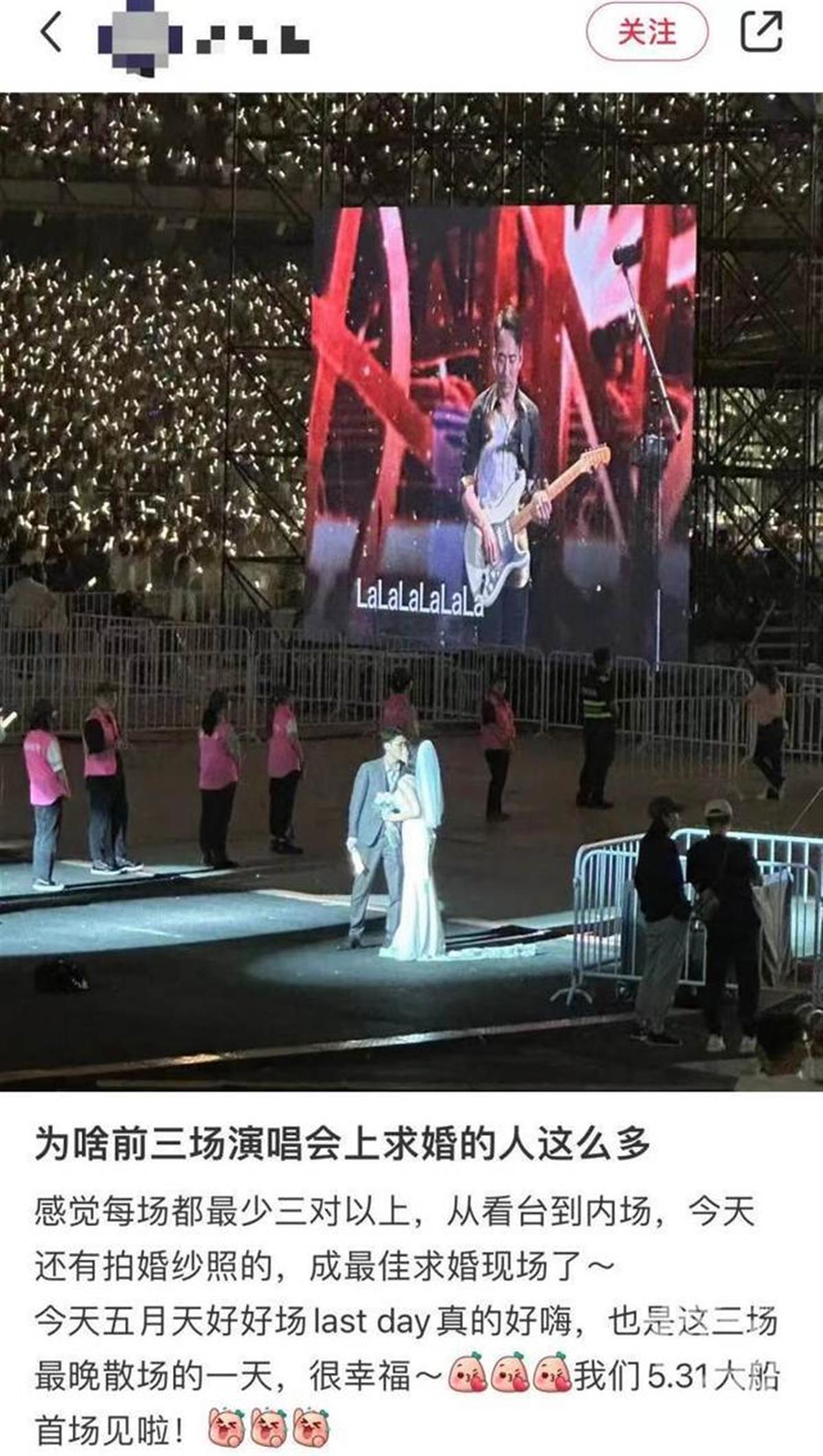 社交平台上很多网友吐槽五月天演唱会上求婚太多