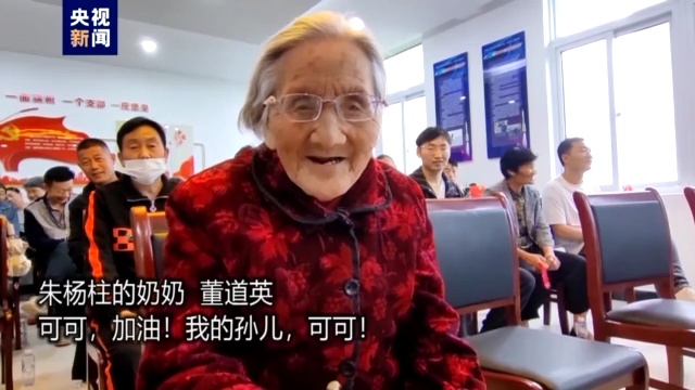 5月30日9时31分,神舟十六号载人飞船发射升空。一大早,在航天员朱杨柱的家乡徐州沛县的滨湖社区,他的父母、亲邻聚集一堂,共同收看神舟十六号载人飞船的升空直播。朱杨柱90岁的奶奶董道英老人也来观看直播,当她看到朱杨柱出现时,高兴地喊着孙子的小名“可可”,为孙子加油。