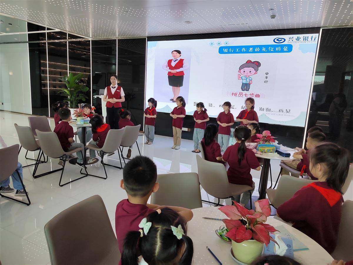 孩子们还通过角色扮演银行保安、综合柜员、大堂经理等岗位,亲身体验银行工作。工作人员教授银行基本礼仪,孩子们现学现用,瞬间进入角色,变身小小“银行家”。