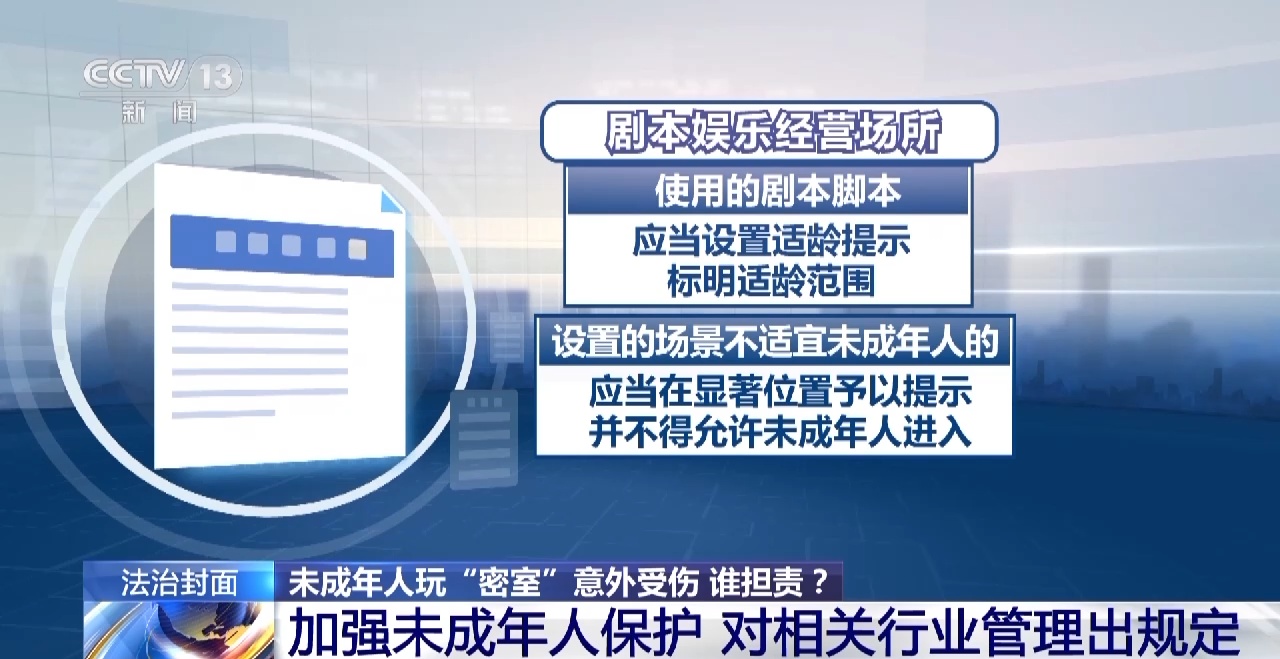 2022年6月,文化和旅游部、公安部、住房和城乡建设部、应急管理部、市场监管总局发出关于加强剧本娱乐经营场所管理的通知。其中规定,加强未成年人保护。剧本娱乐经营场所使用的剧本脚本应当设置适龄提示,标明适龄范围;设置的场景不适宜未成年人的,应当在显著位置予以提示,并不得允许未成年人进入。剧本娱乐经营场所应当采取措施防止未成年人沉迷。除国家法定节假日、休息日及寒暑假期外,剧本娱乐经营场所不得向未成年人提供剧本娱乐活动。但到底什么题材的游戏适合未成年人参与,适龄范围又是什么,并没有明确的规定。