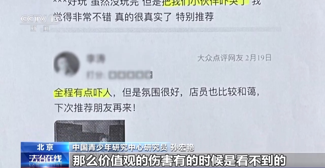 中国青少年研究中心研究员 孙宏艳:价值观的伤害有的时候是看不到的,其实是更隐性的一种伤害,比如说有的剧本里边,掺杂着抽烟、酗酒,甚至吸毒、自杀,还有些宅斗、宫斗、封建迷信的这样的一些内容。