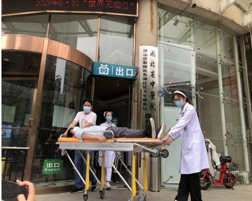 为了更好地服务高校及社区等医联体单位转诊患者,畅通医联体转诊急救绿色通道,确保转诊患者得到及时有效的救治,提高医务人员的应急反应能力,确保医疗质量和安全,5月31日上午,湖北省中医院在社区医联体成员单位——洪山区梨园街道公共卫生服务办苏艳芳科长、东湖社区党委副书记张青、东湖社区卫生服务站党支部书记陈淑芬的大力支持协助下,组织了一场医联体转诊急救绿色通道应急演练。