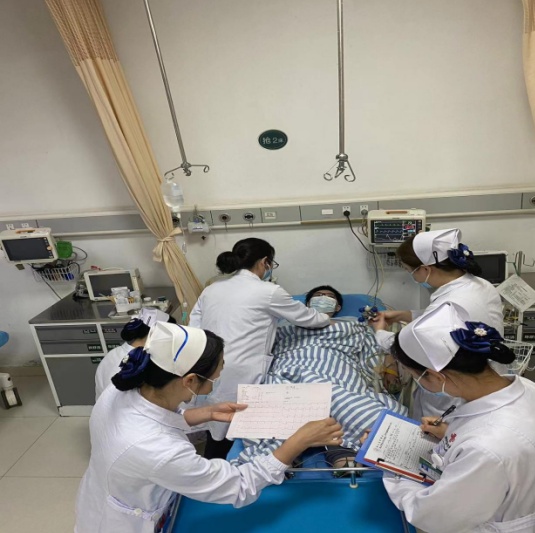 10时03分,救护车到达梨园街东湖社区卫生服务站,此时大家才知道,原来这是一场由医院组织的医联体单位转诊急救绿色通道应急演练。10时35分,救护车将患者接回光谷院区急诊科,闻讯赶来的急诊科医生和护士立即将“患者”安置于抢救床,对“患者”进行体格检查,并迅速予以心电监护、吸氧、采血、建立静脉通道等必要急救措施。同时,相关会诊医生均在5分钟内迅速到达现场,参与救治。整个抢救过程紧张有序,一气呵成。至10时50分,宣布演练结束。