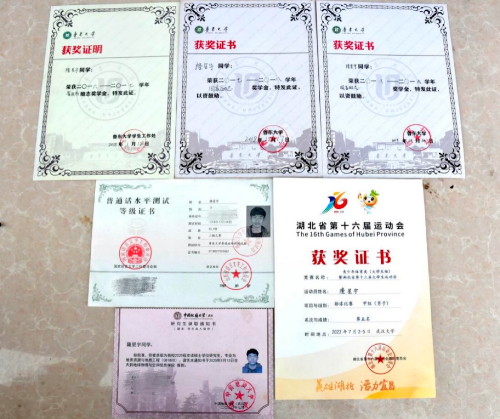 贴满了他的奖状