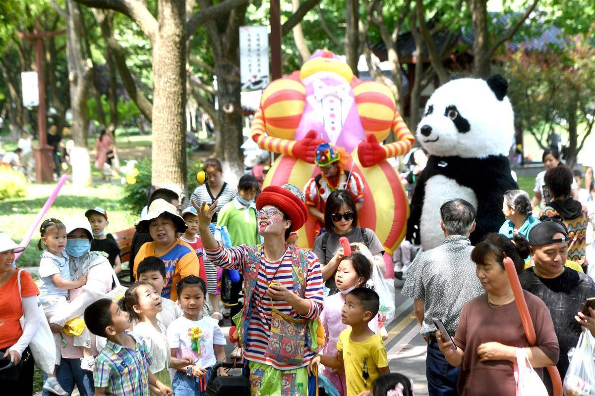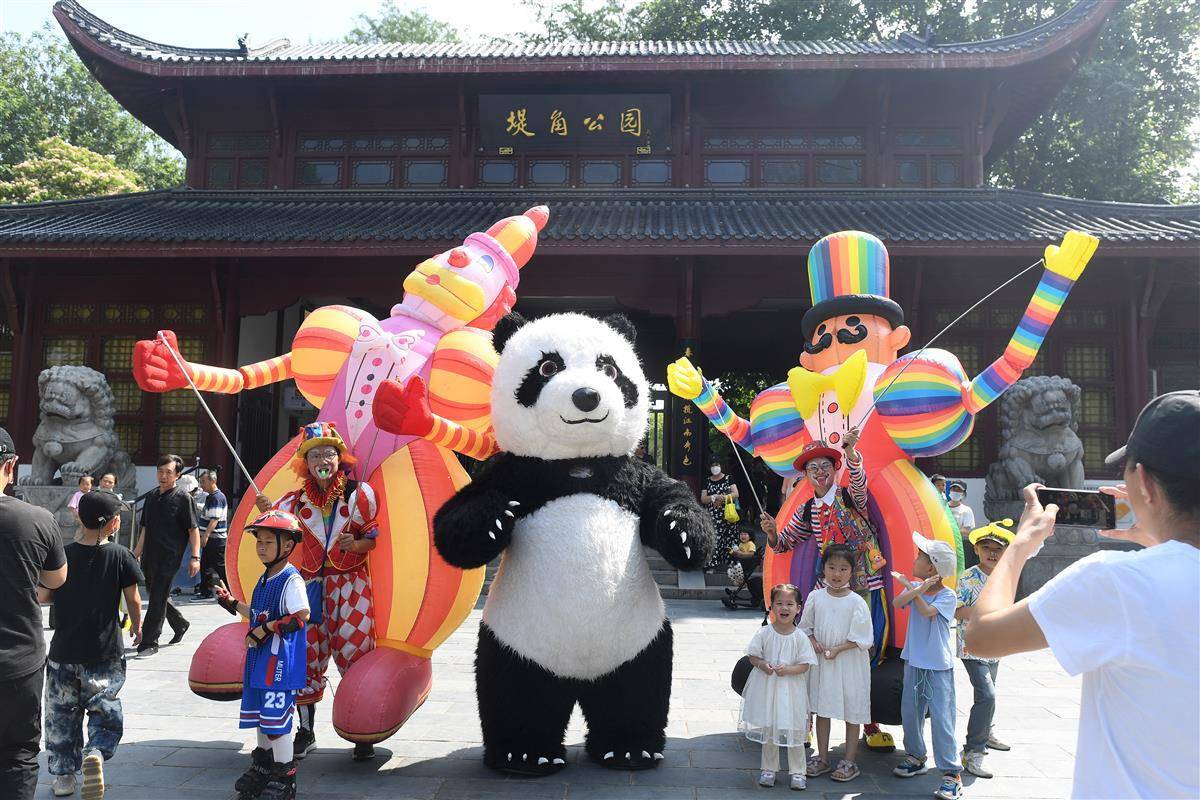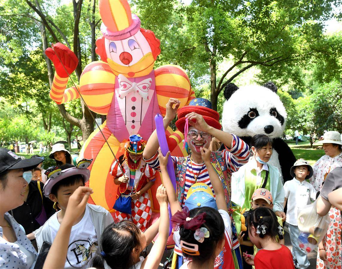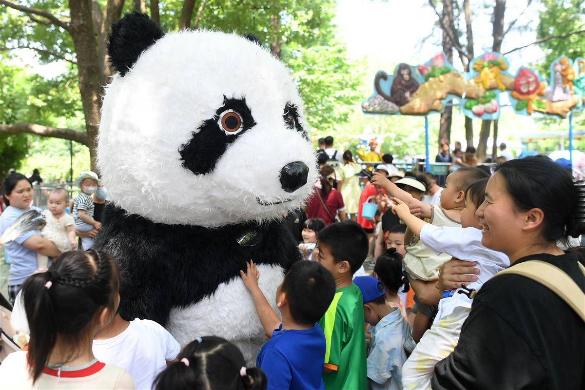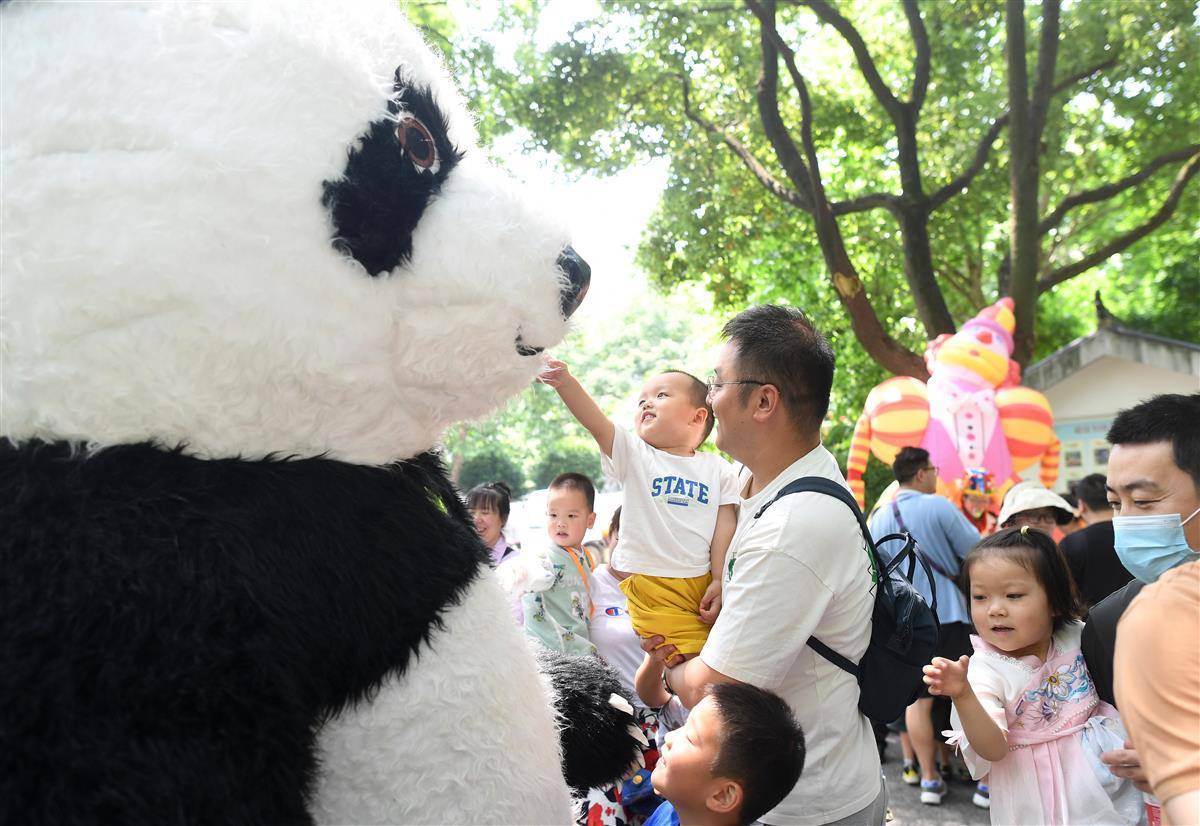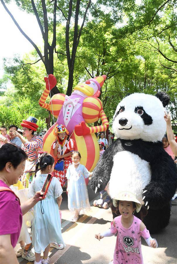 6月1日,武汉市江岸区堤角公园热闹非凡,“六一欢乐大巡游”正热闹上演。一个巨型国宝“熊猫”和两个可爱有趣的气球“小丑”搭档出现,备受游园的大朋友和小朋友的青睐。大家忍不住上前去触摸“大熊猫”的绒毛,只见他摇摇晃晃,憨态可掬,非常的可爱。搞怪的气球小丑和孩子们互动,做出蝴蝶、花、鸟、鱼等动植物形状的气球,逗得孩子们开怀大笑。