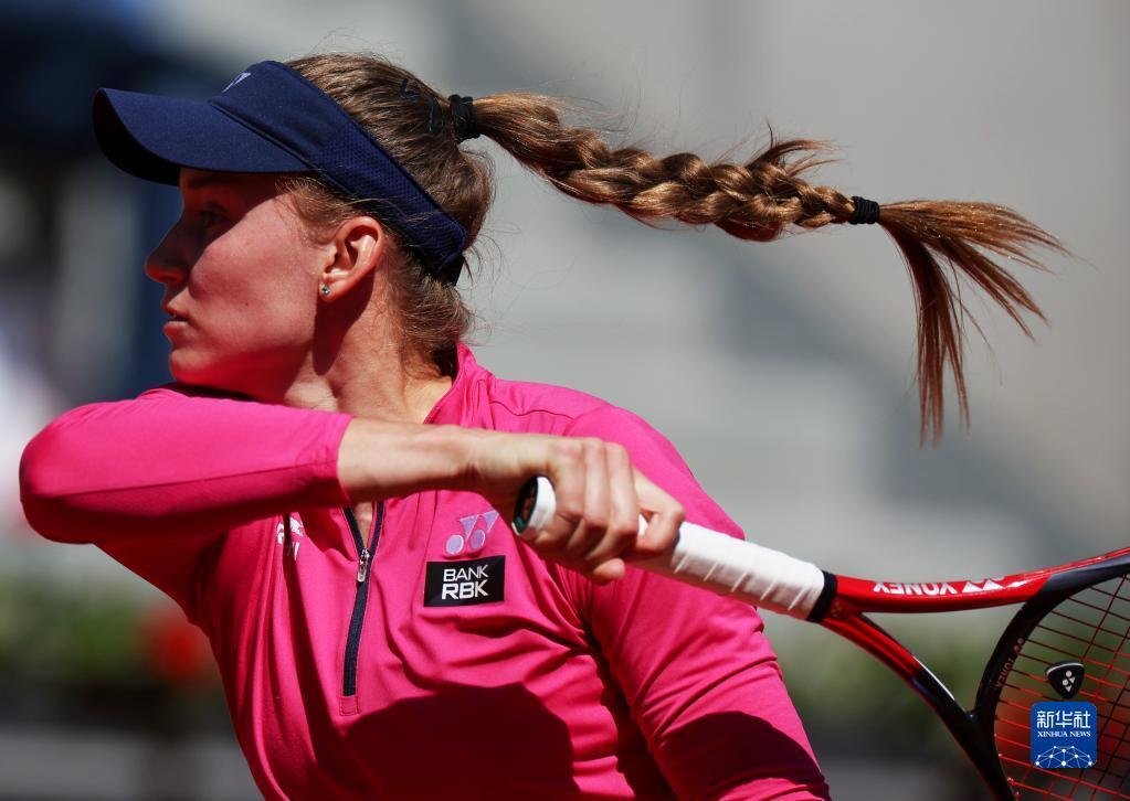 6月1日,莱巴金娜在比赛中回球。新华社记者 高静 摄