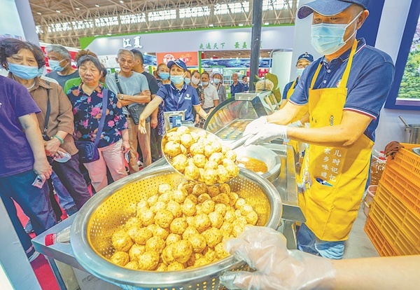 “我刚路过看到好多人排队,炸得金黄的圆子,几好看哟!”从武汉光谷坐地铁来观展的陈太婆,边打电话向朋友介绍,边走到队尾准备排队尝鲜。