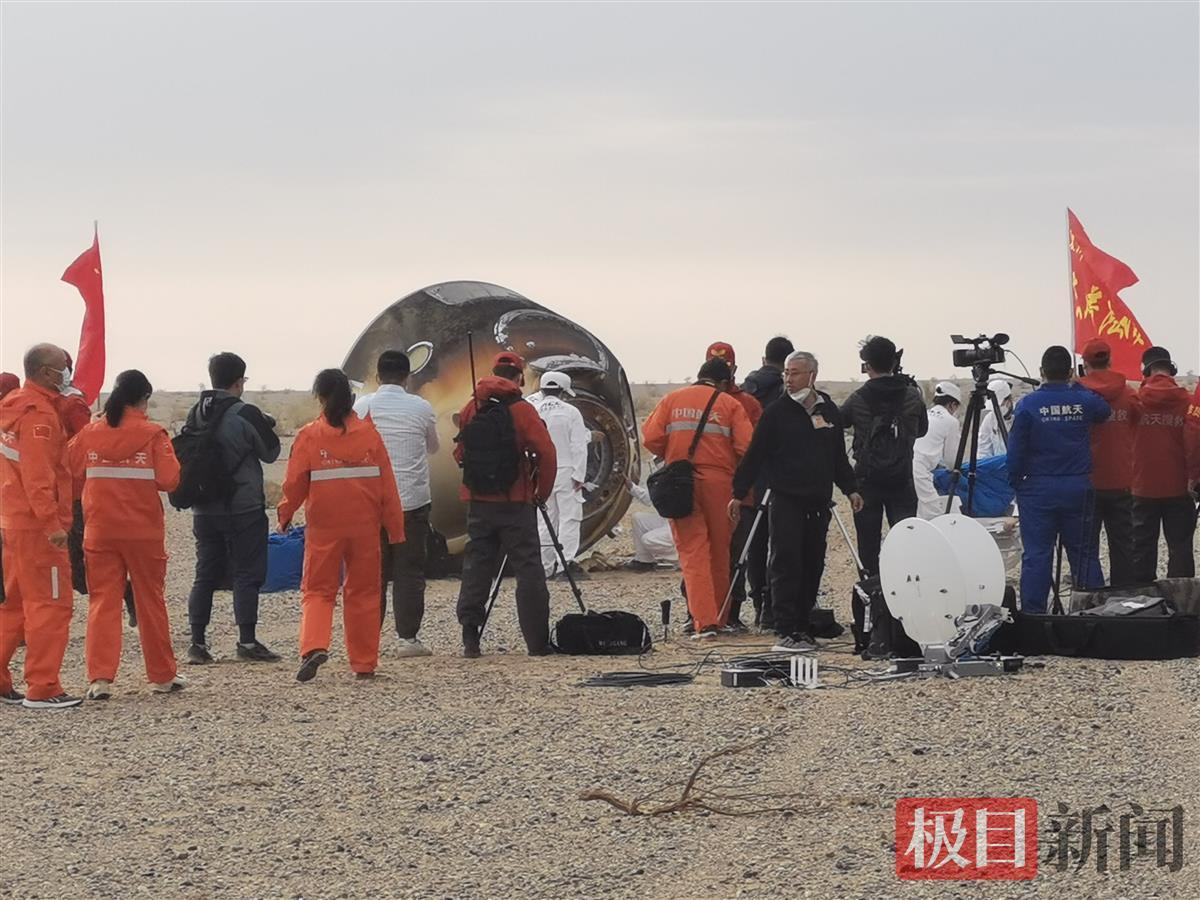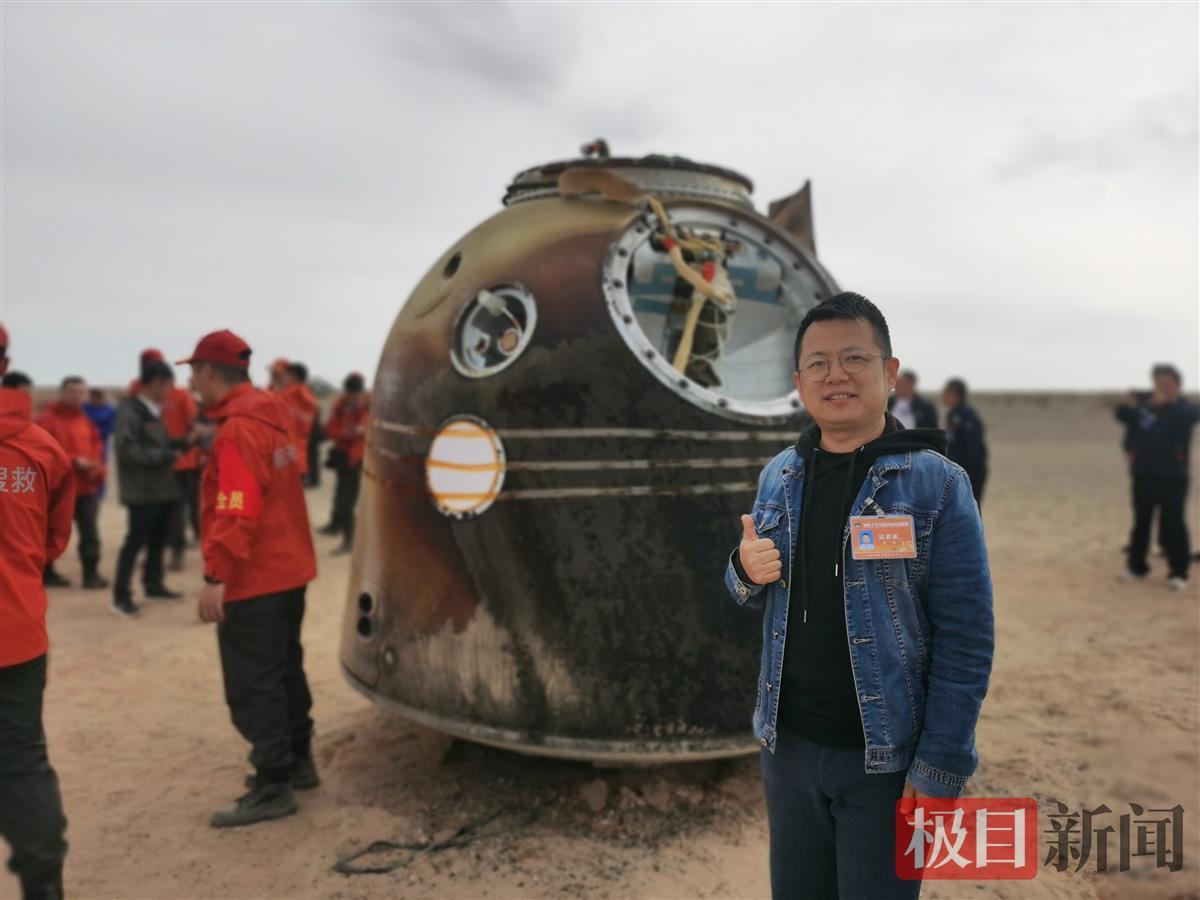 极目新闻记者詹钘在神舟十五号返回舱着陆现场。