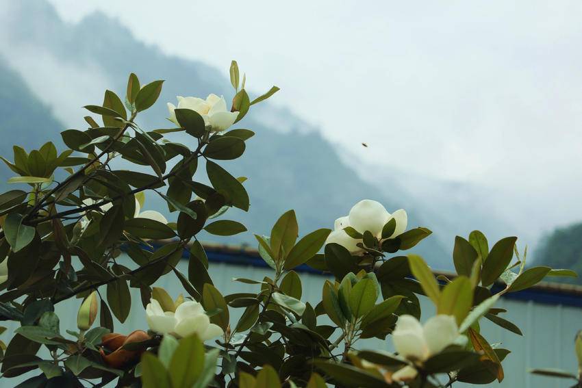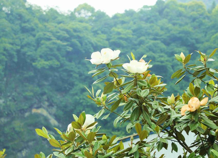 白雾朦朦,青山隐隐。小满时节,鹤峰县邬阳乡骑龙茶厂周围的荷花玉兰,开得格外可人,蜂飞蝶舞,增加了茶厂美,乡村环境美。